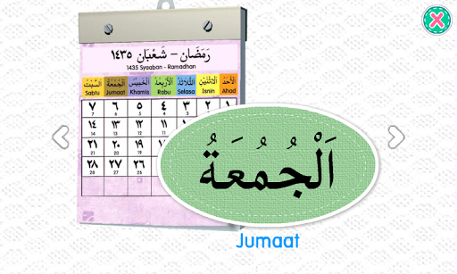 Yaumul Ahadi - Hari Ahad Yaumul Isnaini - Hari Isnin Yaumul Sulasai - Hari Selasa Yaumul Arbia - Hari Rabu Yaumul Khomis - Hari Khamis Yaumul Jumuah - Hari Jumaat Yaumul Sabti - Hari Sabtu. Hari libur يوم العطلة yaumu-l-uthlati.
