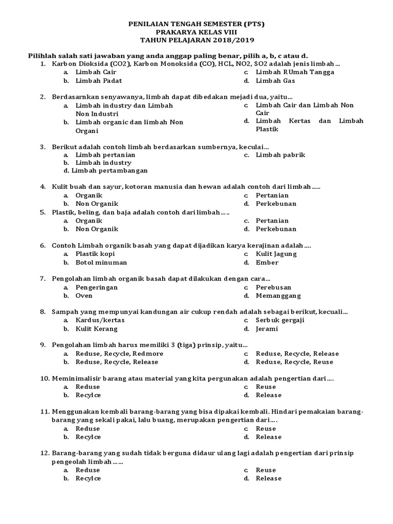 Menggunakan kembali barang-barang yang bisa dipakai kembali. Menggunakan kembali Reuse Pilihlah barang-barang. Berikut ini limbah atau sampah yang ada di sekitar kita digolongkan berdasarkan jenisnya kecuali Preview this quiz on Quizizz.
